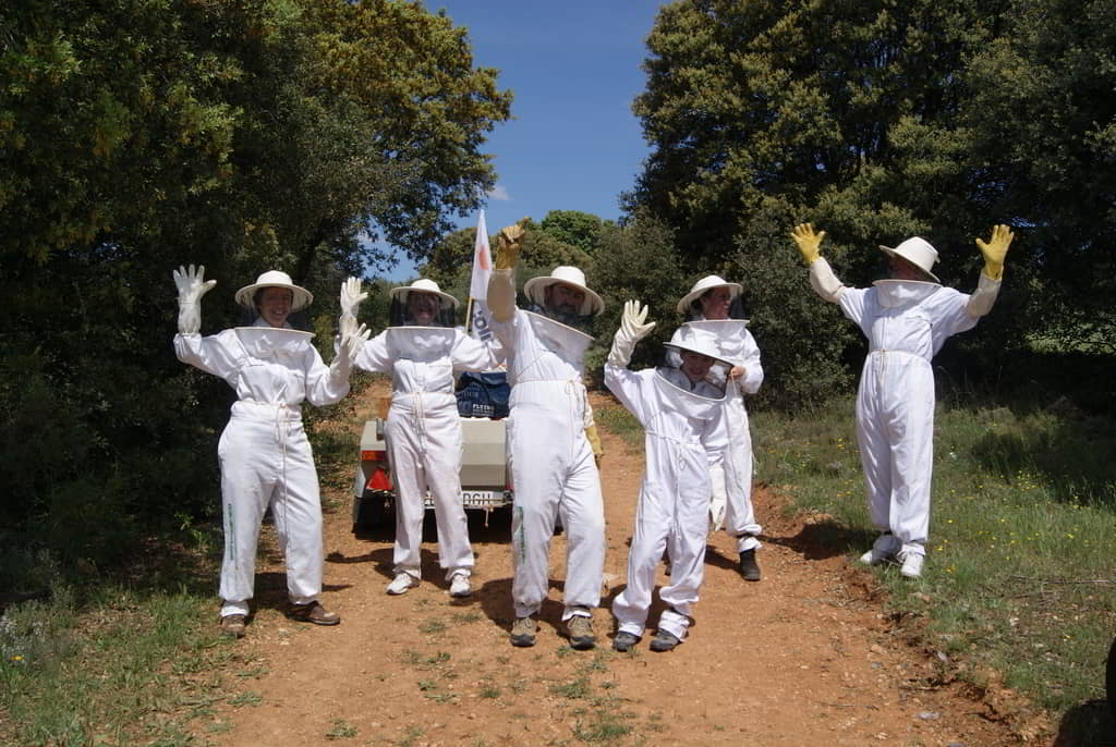 Os dejamos unas fotitos para que veáis qué bien lo pasamos y lo guapos que estamos con nuestros trajes de apicultores 😉