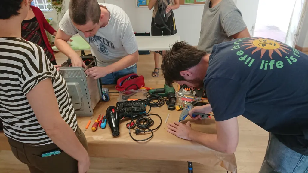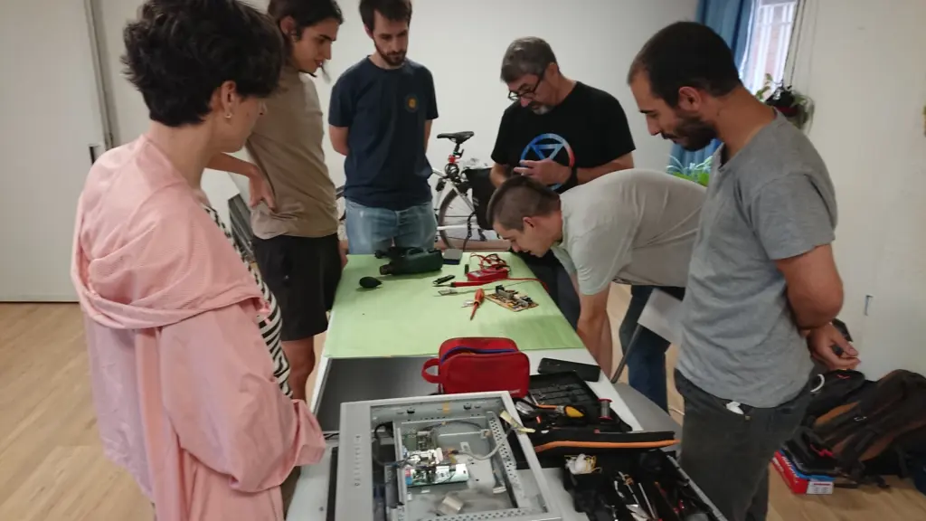 El pasado sábado estrenamos nuestro taller de autoreparación aguamayero! Esta iniciativa, que en otros lugares se conoce como Repair Café, consiste en ayudarnos a reparar aparatos eléctricos o electrónicos que nos fallan por algún motivo pero pensamos que podemos recuperarlos con ayuda de algún/a manitas, y de paso aprender para futuras reparaciones.