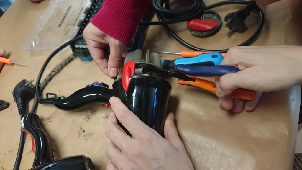 Tuvimos también una batidora del propio local de Agua de Mayo que tenía el botón del interruptor de plástico roto. Aunque el fallo se veía claro, esta reparación no es fácil ya que habría que conseguir una pieza de plástico igual para reemplazarla, y claramente no venden esa pieza suelta, intentamos hacer el apaño con silicona pero no salió bien. Salió la idea de construir una pieza con una impresora 3D que tenía un compañero pero hace falta el diseño que tampoco es fácil de hacer. Finalmente quedamos en que se lo llevaba una de las personas para intentar buscar un interruptor de recambio en alguna ferretería o tienda de electrónica que aunque no fuera el mismo, pudiera encajar bien. A ver si para la siguiente podemos recuperar esta batidora!