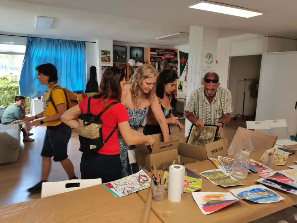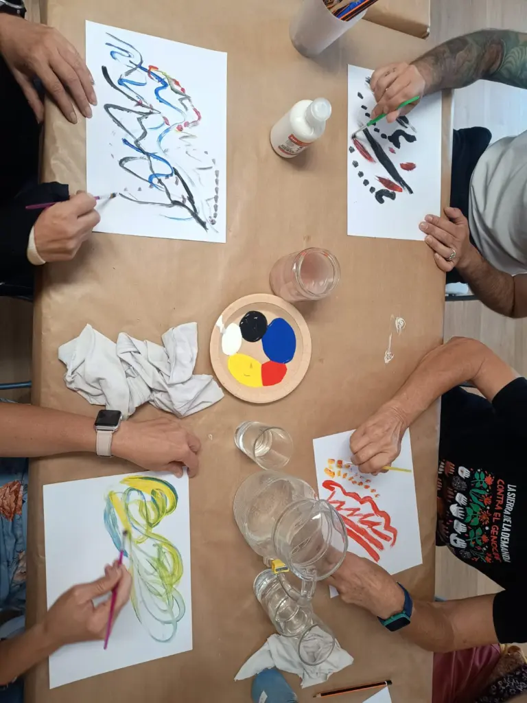 El pasado domingo clausuramos la exposición que ha embellecido nuestro local en los últimos meses, obra de la artista alcalaína Zaida Escobar. Como acto de despedida, la propia Zaida impartió el segundo taller de juego y pintura para todas aquellas personas que quisieron participar. Como suele ser la seña de identidad de Agua de Mayo, tanto mayores como peques disfrutaron por igual de esta oportunidad única para aprender de una de las artistas alcalaínas más talentosas.