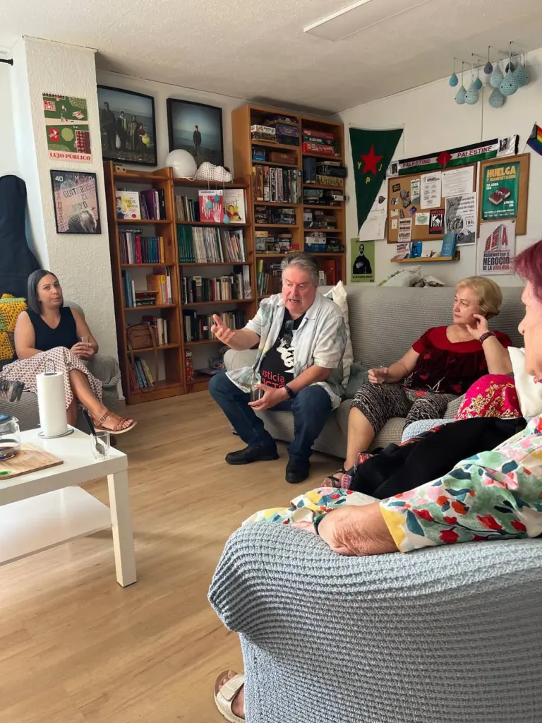 Pero no solo conocimos ESPANICA, sino que Juanjo tuvo la amabilidad de venir con su guitarra y ofrecernos un recital de versiones de cantautores tan conocidos como Víctor Jara, Serrat, Miguel Hernández, Violeta Parra, Silvio Rodríguez … que forman parte del imaginario y del recuerdo de todas. Terminamos la sesión entonando el BELLA CIAO, cantando y bailando en grupo para festejar esta vuelta.
